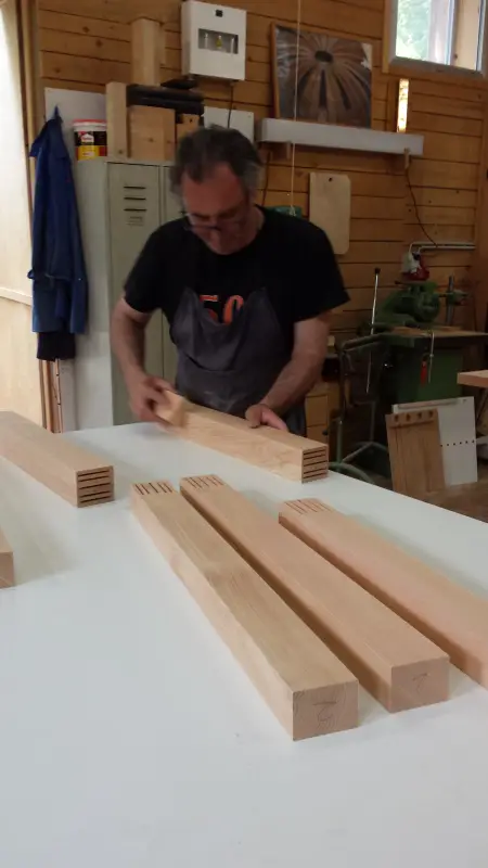 Das sehr schön Holz mit der Struktur ähnlich der Esche und einem leicht rosa Farbton wurde schonend luftgetrocknet und dann in der LEBARTE Tischlerei in Innerbraz verarbeitet. Die Größe des Tisches und das leichte Design laden zum Verweilen in gemütlicher Runde ein.